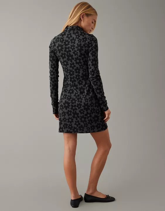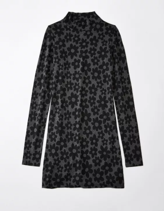 AE Knit Mock Neck Long-Sleeve Flower Mini Dress