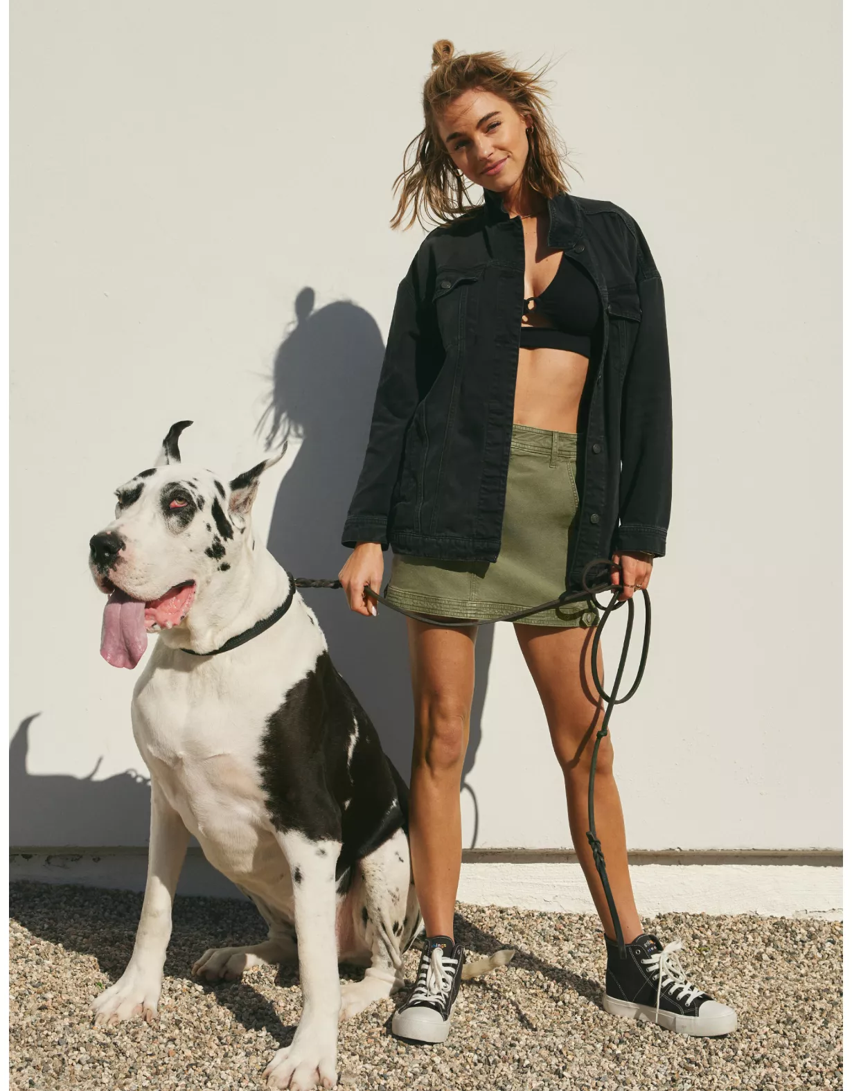 Inspired by him. Made even better for you. Dress for cooler temps in this majorly-comfy oversized denim jacket.