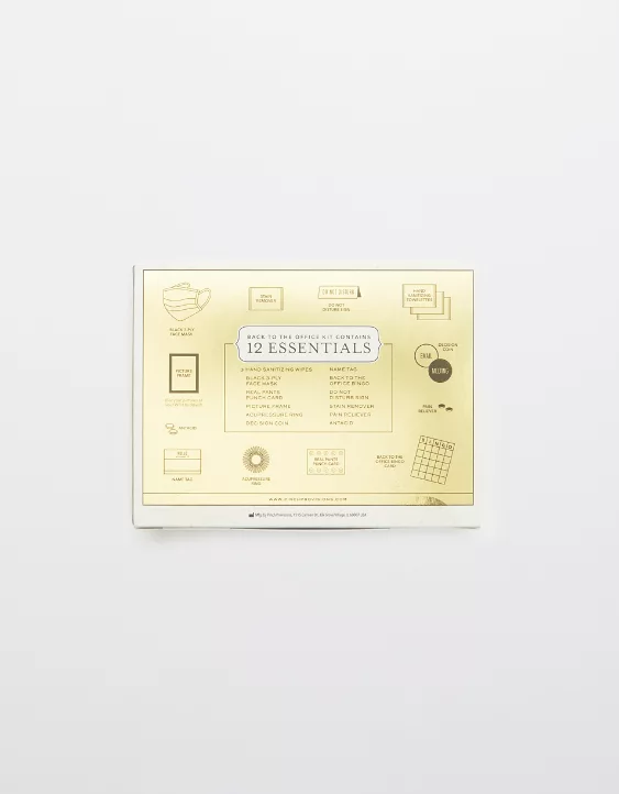 Whether you’re returning to a full-time or hybrid schedule, this terrific new kit will make the transition back to the office a little easier. Contains 10 essentials: Hand sanitizing towelettes, black three-ply face mask, name tag, “You’re on Mute” Do Not Disturb sign, “Back to the Office” bingo, breath drops, stain remover, pain reliever, antacid, picture frame (for your WFH buddies!)